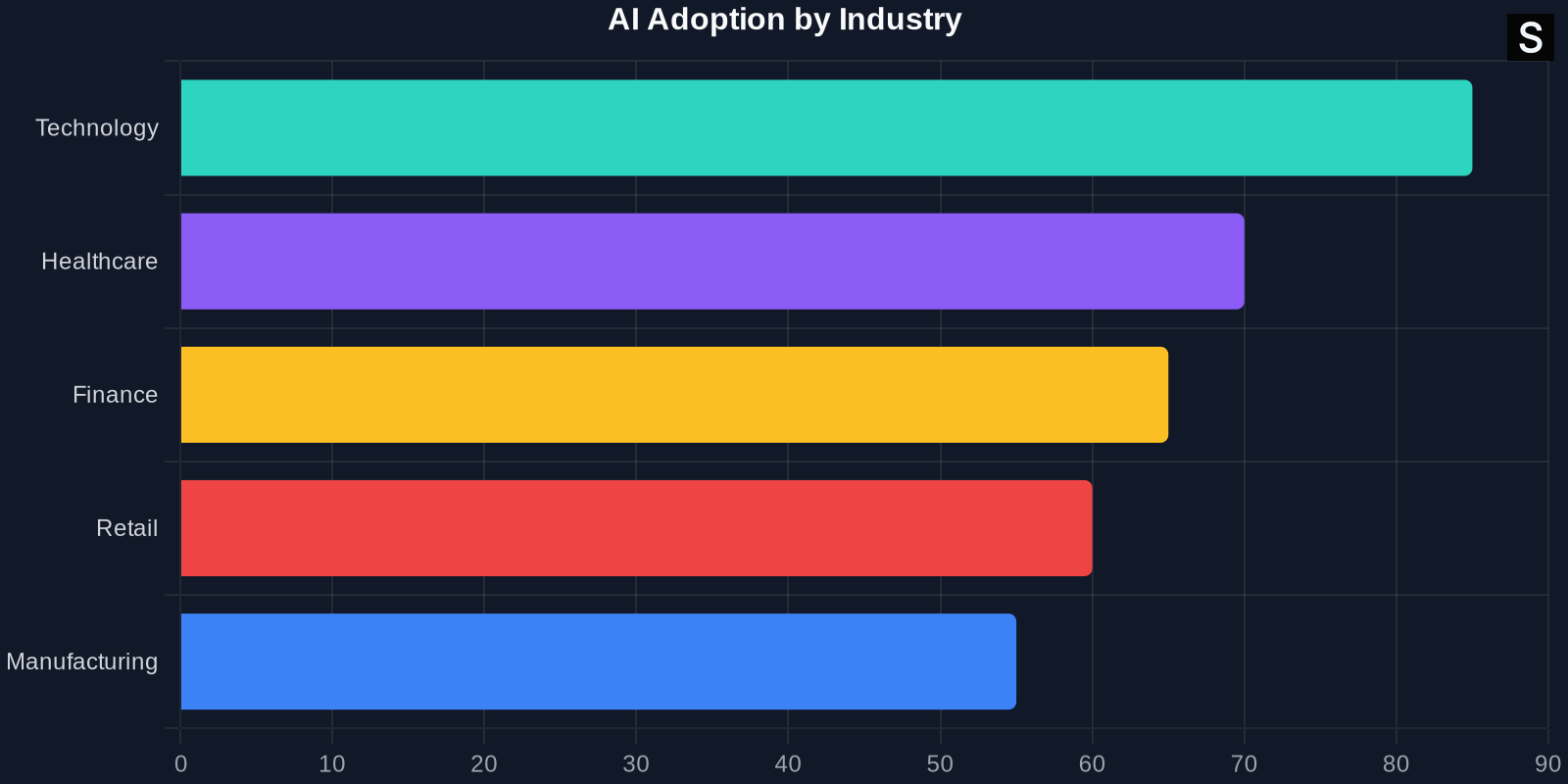 This chart shows the distribution of AI adoption across various industries, demonstrating the widespread impact of platforms like Agent Bricks.